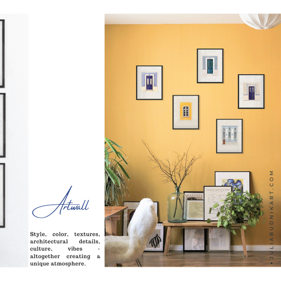 You can complement your personal collection you've selected for the art wall: for example, you can add my artwork with your favorite city, street, or place you enjoy visiting.